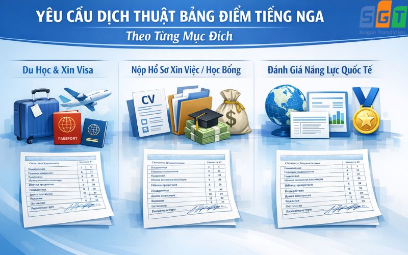 Nhu cầu dịch bảng điểm tiếng Nga phát sinh trong nhiều tình huống thực tế, phổ biến nhất gồm: