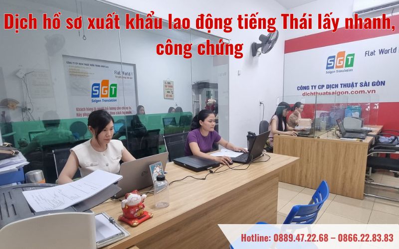 Bạn đang tìm kiếm một đơn vị dịch hồ sơ xuất khẩu lao động tiếng Thái uy tín, chính xác và chuyên nghiệp? Hãy để Dịch thuật Sài Gòn trở thành người bạn đồng hành đáng tin cậy của bạn. Dù là hồ sơ cá nhân, tài liệu chuyên ngành hay phiên dịch dự án, Dịch thuật Sài Gòn luôn hỗ trợ. Chúng tôi cam kết xử lý nhanh chóng, chính xác và hiệu quả cho mọi nhu cầu khách hàng. Liên hệ ngay hôm nay để nhận tư vấn miễn phí và báo giá chi tiết. Chúng tôi giúp bạn tiết kiệm thời gian và nắm bắt cơ hội hợp tác quốc tế.
